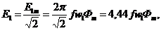 ЭДС отстают от магнитного потока на угол 90°. Действующие значения ЭДС, наводимых в обмотках, соответственно равны: