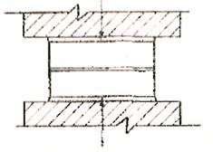 Подготовка к испытанию. · приготовить в сферической чаше раствор, отвесив цемента марки 400 -500 г, воды-200 г и тщательно перемешав смесь лопаточкой; · кирпичи полностью погрузить в воду на 1 мин; · на горизонтально установленную пластинку уложить последовательно лист бумаги, слой раствора толщиной не более 5 мм и первый кирпич, затем опять слой раствора и второй кирпич (излишки раствора убрать, а края бумаги загнуть на боковые поверхности образца): образец выдержать в таком положении 30 мин.; · образец перевернуть и в таком же порядке выровнять другую его опорную поверхность; отклонение от параллельности опорных поверхностей образца по максимальнойразности любых 2х его высот и не должно превышать 2 мм. Предел прочности на сжатие определяют на образцах, состоящих из двух целых кирпичей или его половинок. Кирпичи или его половинки укладывают постелями друг на друга, последние поверхностями раздела в противоположные стороны. Опорные поверхности кирпича пластического формования выравнивают цементным раствором, кирпич полусухого прессования испытывают насухо. До испытания образцы выдержать трое суток в помещении при температуре 20 ±3 0С и относительной влажности воздуха 60-80%. Допускается выравнивание опорных поверхностей кирпича пластического формования с помощью прокладок из технического войлока, резинотканевых пластин, картона и других материалов. Проведение испытаний Схема испытания образцов на сжатие приведена на рисунке 2.