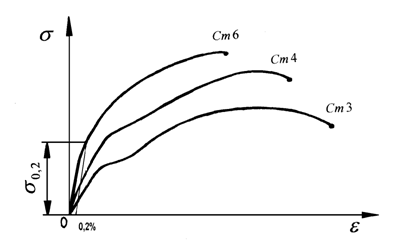 Для пластичных материалов (средне- и высокоуглеродистая сталь, медь, алюминий и др.), диаграммы растяжения которых не имеют ярко выраженной площадки текучести, вводится понятие