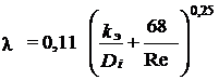 где k э – коэффициент эквивалентной шероховатости, м. Предельное число Рейнольдса, характеризующее границы переходной области и области квадратичного закона,