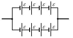 13. При параллельном соединении п одинаковых источников тока с одинаковым ЭДС ε и внутренними сопротивлениями r каждый количество теплоты, выделившееся во внешней цепи с сопротивлением R, за время t, будет равно а) 14. а) 20 В, 2 Ом; б) 20 В, 4 Ом; в) 40 В, 4 Ом; г) 40 В, 16 Ом.