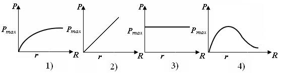 9. а) б) в) г) 10. На каком из графиков верно представлена зависимость полезной мощности P от сопротивления R?