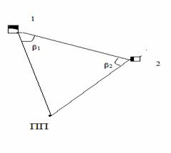 β1=(α1-ВУП1 – α1-2)=106º35΄35˝; β2=(α2-1 – α2-ВУП1)= 58º41΄17˝.