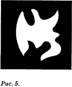 Это свойство восприятия, конечно, не осталось не замеченным психологами, и дискутировалось довольно долгое время. Самая четкая характеристика его была дана Титченером [20], на которого и я буду непосредственно ссылаться. Он бы сказал, что вначале Т-образные формы занимают более высокий уровень сознания, тогда как остальное находится на более низком его уровне. Внезапно происходит изменение: Т-образные формы уходят из верхнего уровня, а белые листья приобретают максимальную ясность; Т-образные формы при этом становятся не более отчетливыми, чем ощущение книги в руке при ее чтении. Если бы Титченер написал только это последнее, между нами не было бы разногласий, поскольку «ощущение книги» относится к «фону» всей ситуации. Однако в действительности он имел в виду, что существование Т-форм никак не затрагивается изменением в их субъективном восприятии. Просто меняется их уровень, они перемещаются с гребня внимания к его основанию, туда, откуда в это время поднимаются «листья». Возражая против такой интерпретации (которая уже подвергалась энергичным нападкам со стороны Рана) и одновременно выступая против Вундта, Рубин очень настойчиво утверждал, что когда Т-формы исчезли и на их месте появился просто фон, то Т-формы утратили вообще какую-либо ясность, поскольку они перестали существовать... Заключать же о том, как выглядит нечто, когда оно вовсе не наблюдаемо, отправляясь лишь от фактов наблюдения этого нечто в момент, когда оно находится на гребне волны внимания, — значит принимать гипотезу констант и окончательно отказываться от всяких попыток фактического подтверждения своих положений. Келер [13] указывал, что если мы исходим из описаний, причем таких, которые допускают проверку в опыте, то мы должны признать, что Т-формы перестают существовать в тот самый момент, когда мы начинаем видеть листья, и что Т-формы оказываются замещенными абсолютно отличным от них фоном, относящимся к той же самой части стимульного комплекса. Теперь мы видим, сколь значительны изменения, происходящие в тот момент, когда фигура «возникает» из своего фона. Рубин дал яркое описание того потрясающего впечатления неожиданности, которое вновь и вновь переживалось им в момент превращения, даже в случаях, когда он заранее пытался вообразить, какой будет новая фигура. Мы видели, как понятие внимания мешает признанию и чистому описанию очевидных феноменальных различий. Все же некоторая связь между осознанием фигуры и фона и так называемым вниманием существует. Факты показывают, что здесь существует функциональная зависимость, а не отношение тождества. Как правило, фигура является центром субъективного опыта. Стоит мне обратить внимание на какую-нибудь конкретную часть поля, как эта часть выступает в качестве фигуры. В учебной аудитории я часто проводил следующий эксперимент: используя затвор фотоаппарата, я проецировал на короткое время рис. 4, давая перед этим одной половине аудитории инструкцию смотреть на белые, а другой — на черные части картинки. Затем я просил всю аудиторию сделать набросок того, что они видели. Неизменно «черная» половина аудитории рисовала Т-формы, а «белая» — листья. Можно ли описать установку наблюдателя, которая вызывается инструкцией: «смотри на»? Мы снова можем сослаться на эксперименты Хорнбоштеля с обращающимися фигур
