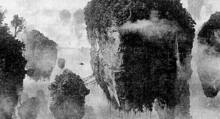 Цу’тэй вёл Джейка и двух юных охотников по крутой горной тропе. Все сидели верхом на лютоконях. Джейк почувствовал гордость: теперь он без труда ехал наравне с На’ви. Им предстояло выдержать трудное испытание, которое сделает его ближе к Оматикайя. Но Джейка беспокоило, что группой руководит Цу’тэй. Лютокони остановились на краю обрыва, за которым открывалось туманное ущелье. Далеко внизу Джейк увидел лес. В воздухе висели громадные глыбы невесомого анобтаниума, соединённые древесными корнями. Корни прорастали сквозь камни и спускались вниз, на землю, как огромные лианы. Скалы парили, словно надутые горячим воздухом шары на верёвочках. Они вырастали до самого неба, упираясь вершинами в облака. Пока охотники осматривались, раздался страшный грохот: две скалы столкнулись друг с другом и лавина грязи и камней обрушилась на землю. Это была Икнимайя, или «Лестница в небо». Каждый юный воин На’ви должен пройти это испытание, чтобы стать взрослым. Но восхождение было только частью испытания. Вторая часть ждала их наверху. Джейк отступил назад, стараясь припомнить всё, чему его учила Нейтири. Он знал, что сможет это сделать. Он взглянул на Цу’тэя и спросил: — Мы идём? Когда Цу’тэй кивнул, Джейк подбежал к краю обрыва и прыгнул в воздух, вытянув вперёд руки. Он ухватился за корни и начал взбираться наверх. Боль в мышцах говорила о том, что они поднялись уже очень высоко. Джейк посмотрел вниз. Люгокони казались отсюда лишь крохотными пятнышками на скалах! Джейк продолжил восхождение. Из-под его ног сыпались осколки камней. Но вместо того, чтобы падать, они парили в воздухе! Маленькая группа достигла верхних ветвей странного дерева и оказалась у подножия горы Монс-Веритас. Мимо них проносились спускавшиеся с горы лианы. Вокруг нависали другие летающие острова. Один за другим охотники хватались за лианы и поднимались по ним на один из островов. Джейк посмотрел вниз, но не смог разглядеть ничего, кроме пустоты. Бешеный стук сердца отдавался в ушах, но Джейк сосредоточился на поставленной задаче и не сомневался в своих силах.