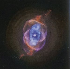 Возникнув, звезды преобразуют атомы водорода (совсем крохотные; в более крупные атомы гелия, углерода или кислорода. Эта реакция, происходящая в сердцевине звезд, называется ядерным синтезом. Она высвобождает так много энергии, что заставляет звезды светиться. Приближаясь к концу своего существования, звезды часто взрываются и в ходе этого колоссального взрыва выбрасывают в космическое пространство произведенные ими атомы. Мы видим на снимках некоторые планетарные туманности и то, что остается от звезд, которые были этими туманностями порождены: светящиеся точки в центре взрыва.