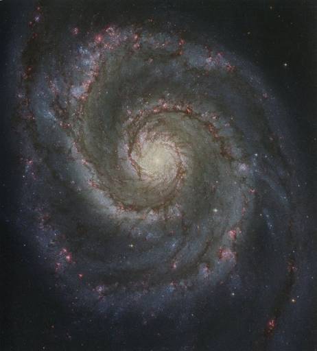 В нашей Вселенной звезды собираются в гигантские семейства, которые называют галактиками. Галактики могут содержать в себе несколько сотен миллиардов звезд. Все звезды, которые мы видим ночью на небе, принадлежат к той же галактике, что и мы. Она называется Млечный Путь. Мы никогда не покидали нашу галактику, но нам удалось сделать фотографии других галактик, существующих во Вселенной. На этом снимке мы видим одну из них – галактику Гончих Псов.