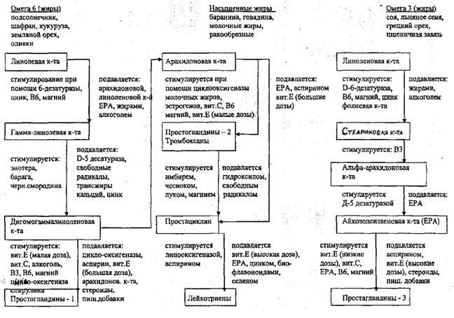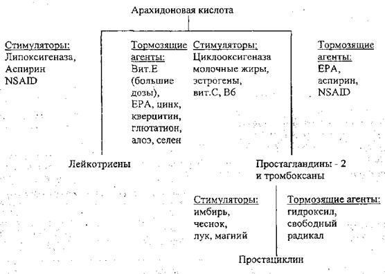 Рис. 31. Нутриенты влияющие на метаболизм арахидоновой кислоты