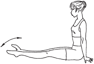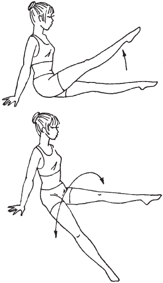 Рис. 18. Упражнение 20 21. Исходное положение: сидя на полу, упершись в него руками, ноги выпрямлены и соединены вместе. Поднимите прямую правую ногу, отведите ее вправо, затем снова поднимите вверх и вернитесь в исходное положение (рис. 19). Проделайте то же самое левой ногой. Количество повторов – 5–10 каждой ногой.