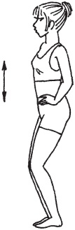 Рис. 23. Упражнение 25 26. Исходное положение: стоя, руки опущены вдоль туловища, ноги вместе, весь вес тела приходится на пятки. Под пальцы ног положите плоский предмет толщиной 5 см. Не сгибая ноги в коленях, поднимитесь на носки, после чего вернитесь в исходное положение (рис. 24). Количество повторов – 5–10.