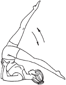 Рис. 66. Упражнение 3 4. Исходное положение: стойка «березка». Выполните мах правой ногой так, чтобы ее носок коснулся пола. Вернитесь в исходное положение и проделайте то же самое левой ногой (рис. 67). Повторите упражнение 5–10 раз каждой ногой.