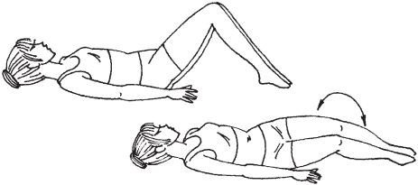 Рис. 96. Упражнение 6 7. Исходное положение: лежа на спине, руки вытянуты вдоль туловища, ноги согнуты в коленях. Нижнюю часть туловища разверните влево, опустив ноги на пол, затем вернитесь в исходное положение (рис. 97). То же самое проделайте в другую сторону. Повторите упражнение 5–7 раз.