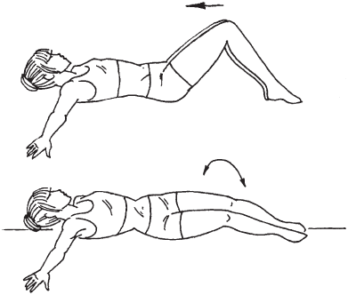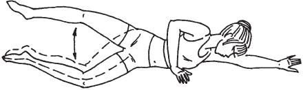 Рис. 99. Упражнение 2 3. Исходное положение: лежа на левом боку, упершись правой рукой в пол. Правую ногу поднимите вверх, после чего опустите, стараясь не касаться левой. Проделайте несколько подъемов и вернитесь в исходное положение, после чего проделайте то же самое другой ногой (рис. 100). Количество повторов – 10.