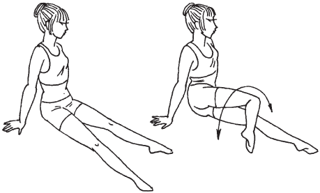 Рис. 104. Упражнение 7 8. Исходное положение: сидя на полу, руки опущены вдоль туловища. Вытянув правую ногу, повернитесь на правое бедро, одновременно сгибая левую ногу и переводя ее через правую таким образом, чтобы колено по возможности коснулось коврика. Вернитесь в исходное положение и проделайте то же самое левой ногой (рис. 105). Упражнение повторите 10–12 раз.