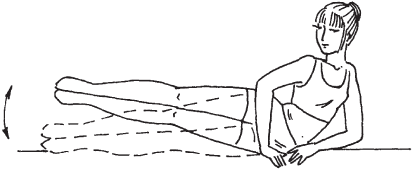 Рис. 106. Упражнение 9 10. Исходное положение: лежа на левом боку, упершись локтем правой руки в пол, сведенные ноги вытянуты. Поднимайте и опускайте ноги 10 раз подряд, после чего перевернитесь на правый бок и повторите упражнение (рис. 107).