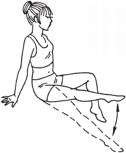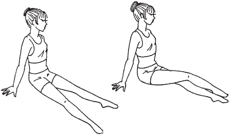 Рис. 110. Упражнение 13 14. Исходное положение: сидя на полу, упершись в него ладонями, правая нога вытянута вперед, левая нога согнута в колене и отведена в сторону. Опираясь на ступню левой ноги, поднимите правую вверх, после чего опустите (рис. 111). Повторите упражнение 8–10 раз каждой ногой.