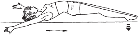 Рис. 111. Упражнение 14 15. Исходное положение: лежа на спине, руки вытянуты вдоль туловища, ноги вместе. Вдохните, вытяните руки над головой, выдохните и потянитесь за ними. Опираясь на пятки, вытянитесь как можно дальше вперед, задержитесь на 10–20 секунд в этой позиции, снова вдохните и вернитесь в исходное положение (рис. 112). Количество повторов – 10.