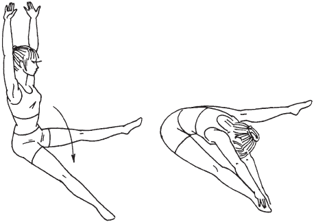 Рис. 95. Упражнение 5 6. Исходное положение: сидя на полу, упершись руками в пол за спиной, ноги разведены. Выполняйте наклоны вперед, стараясь коснуться пальцами носков, после чего вернитесь в исходное положение (рис. 96). Повторите упражнение 5–7 раз.