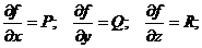 Если на области D существует функция f(x, y, z), имеющая непрерывные частные производные, для которых выполняются свойства: