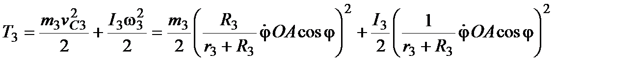 Определение угловой скорости и углового ускорения маховика. Кинетическая энергия системы Кинетическую энергию механизма находим как сумму кинетических энергий его звеньев