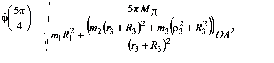 Для определения угловой скорости маховика применяем теорему об изменении кинетической энергии в конечной форме, полагая, что механизм в начальный момент находился в покое.