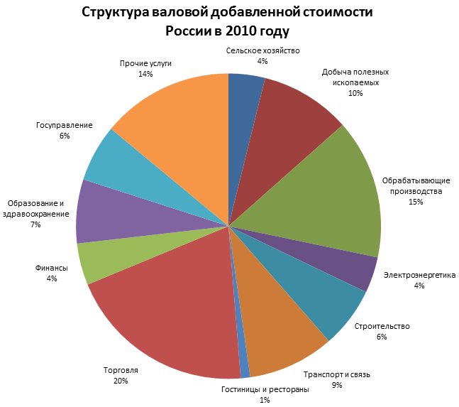 ВВП России в 2010 году: В 2010 году ВВП России увеличился на 4,0 %, что было самым высоким показателем из всех стран «большой восьмёрки». Почти половина роста ВВП в 2010 году обеспечена за счёт обрабатывающих производств, отраслей с высоким уровнем добавленной стоимости. По данным Всемирного банка, ВВП России по ППС на душу населения в 2010 году вырос на 8,0 %, составив $20770. По этому показателю Россия заняла 43-е место среди стран мира.