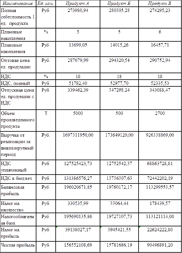 195 690 135,86- 39 138 027,17=156 552 108,69руб. Аналогично для продуктов Б и В.
