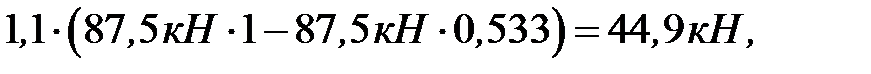 Горизонтальная поперечная нагрузка Hm включает в себя боковые силы Hk и Hс приложенные к соответствующим колесам крана. Боковые силы Hk приложены только к двум колесам с одной стороны или по диагонали и всегда направлены в разные стороны, к двум другим колесам приложены силы Hс, всегда направленные в одну сторону – внутрь или наружу пролета (рис. 1.14., в). Горизонтальная нагрузка на колонну определяется для каждой стороны пролета по той же линии влияния, что и вертикальная нагрузка, но с учетом воздействия только одного крана. Для расчета поперечной рамы следует выбрать из возможных схем приложения боковых сил Hk и Hс наиболее невыгодную схему загрузки линии влияния (рис.). Для приведенной схемы (рис.) предельная расчетная горизонтальная нагрузка на колонну от боковых сил равна: - на левую колонну
