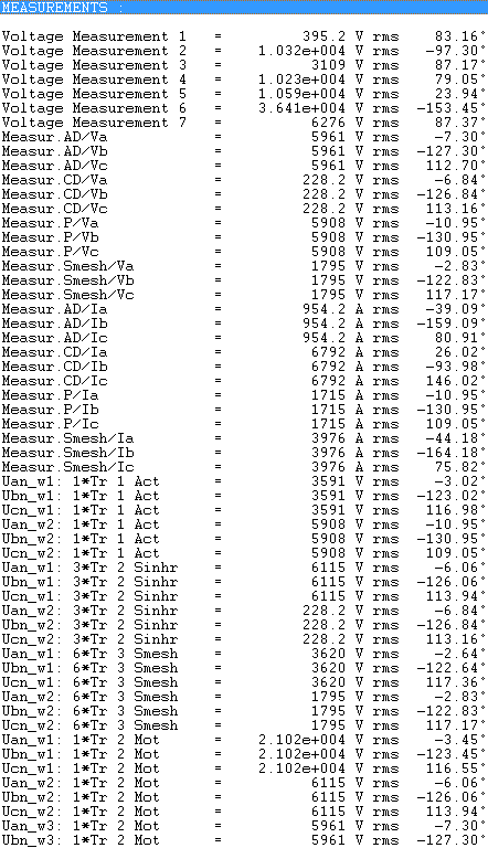 Рис.6 – Вывод данных с « Powergui-Continous» - «Steady-State Voltages and currents»