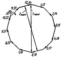 Рис. 5-15. Многоугольник э.д.с. обмотки (см. рис. 5-12). При помощи рис. 5-15 можно найти пульсацию э.д.с. на щетках. Она равна: