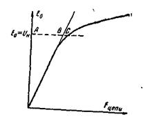 Рис. 5-26. Переходная характеристика (к определению размагничивающей н.с. Fqd обусловленной поперечной реакцией якоря). Для того чтобы поток при нагрузке остался неизменным, необходимо н.с. обмотки возбуждения увеличить на некоторую величину Fqd, которая находится следующим образом. Передвинем отрезок Значение нс. Fqd будет, очевидно, зависеть от насыщения машины, т. е. от положения точки Е на переходной характеристике, и от тока якоря Iа. Обе эти зависимости имеют сложный характер и не могут быть точно выражены аналитически. Если принять, что машина (как это обычно бывает) работает при насыщении, соответствующем точке E на переходной характеристике, то можно допустить, что при небольшом отклонении от этой точки, вызванном изменением Еа из-за изменения внутреннего падения напряжения, н.с Fqd зависит только от Ia. Как показывают опыт и расчеты, для машин, у которых поперечная реакция якоря резко проявляется, зависимость Fqd от Iа может быть приближенно представлена следующим уравнением: