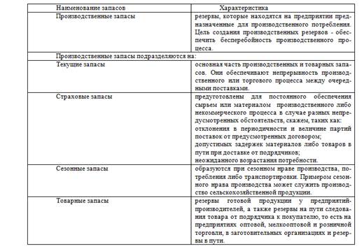 Рис. 1.3 – Основные виды запасов Характеристику видов запасов предоставим в таблице 1.2 Таблица 1.2 – Характеристика видов запасов