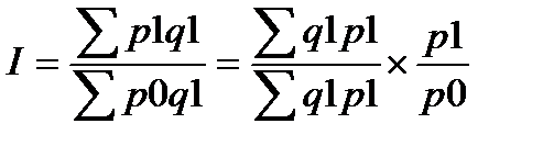 где p1 и p0 - цены единицы товара соответственно в отчетном и базисном периодах; q1 и q0 - количества товара в отчетном и базисных периодах.