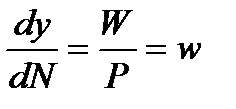 Левая часть уравнения показывает, на сколько возрастает выручка фирмы при увеличении использования труда на единицу, а правая - на сколько при этом возрастут затраты фирмы на оплату труда. До тех пор пока Pdy / dN> W, увеличение занятости сопровождается ростом прибыли. Если обе части уравнения разделить на P, то условие максимизации прибыли примет вид:
