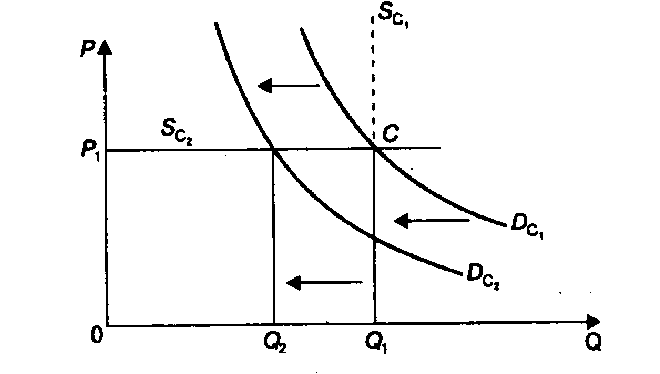 Рис. 14.3. Спрос и предложение в кейнсианской теории занятости: Sc1, Sc2— совокупное предложение; - совокупный спрос; Р— цена; Q — реальный объем производства Вследствие неэластичности цен и заработной платы в направлении понижения кривая совокупного предложения имеет горизонтальное расположение (Sc2). Поэтому снижение объема производства не окажет влияния на цену. При достижении уровня полной занятости (уровня потенциального производства) - точка С — кривая совокупного предложения занимает вертикальное положение (Sc1) Date: 2015-07-24; view: 788; Нарушение авторских прав |