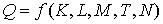 Q=f(K,L,T) где Т — уровень развития технологий, L — труд, K — капитал;