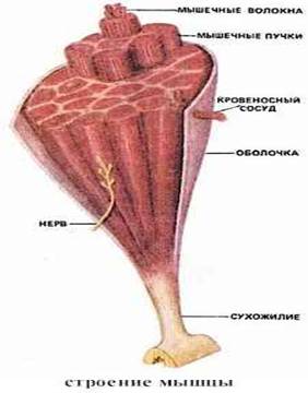Мышцы или мускулы (от лат. musculus — мышца (mus — мышка, маленькая мышь)) — органы тела животных и человека, состоящие из упругой, эластичной мышечной ткани, способной сокращаться под влиянием нервных импульсов. Предназначены для выполнения различных действий: движения тела, сокращения голосовых связок,дыхания. В теле человека более 600 мышц Большинство из них парные и расположены по обеим сторонам тела. Самые маленькие прикреплены к мельчайшим косточкам, расположенным в ухе. Самые крупные — большие ягодичные мышцы, они приводят в движение ноги. Самые сильные мышцы — икроножные и жевательные. Самая короткая мышца тела находится под верхней губой и поднимает уголки рта при улыбке. А самая длинная мышца человека - портняжная - начинается от верхней части таза (так называемой передней верхней подвздошной ости), проходит наискось по передней поверхности бедра и прикрепляется к внутренней части колена (так называемой большеберцовой кости). По форме мышцы очень разнообразны. Чаще всего встречаются веретенообразные мышцы, характерные для конечностей, и широкие мышцы — они образуют стенки туловища. Мышцы и скелет определяют форму человеческого тела. Активный образ жизни, сбалансированное питание и занятие спортом способствуют развитию мышц и уменьшению объёма жировой ткани. Общая масса мышц составляет: - у мужчин – 42% веса тела. - у женщин – 35%, - у спортсменов – 45-54% и более. У новорожденных — чуть больше 20%. С возрастом масса мышц уменьшается до 30%. Более 50% всех мышц расположено на нижних конечностях, 25-30% - на верхних, 20-25% - в области туловища и головы.