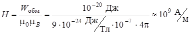 Сравним с энергией магнитного поля при , рассчитывая величину , при котором .