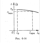 Схема включения двигателя постоянного, тока параллельного возбуждения через пусковой реостат ПР изображена на рисунке 6-13. Если обмотку возбуждения такого двигателя включить через регулировочный реостат РВ на напряжение другого источника, то получится двигатель независимого возбуждения. Скоростная характеристика n=f (Iя) таких двигателей при U =const и Iв = const приведена на рисунке 6-14, для объяснения которой обратимся к формуле скорости двигателя (22):