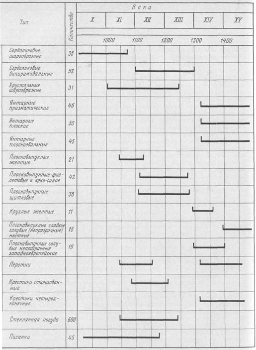 Рис. 7. Хронология изделий из камня, стекла и янтаря
