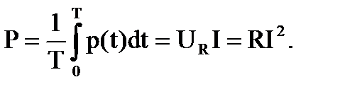Векторы, изображающие синусоидальные функции времени, представлены на векторной диаграмме рис. 3.2, б. Мгновенная мощность резистивного элемента p(t) = uR·i = URm sin(ωt + ψu)·Im sin(ωt + ψi) = = URm Im sin2(ωt + ψi)= URm Im = Временная диаграмма мгновенной мощности представлена на рис. 3.2, а. Из графика хорошо видно, что вся энергия, поступающая в резистивный элемент, расходуется в нем и не возвращается генератору. Среднее значение мгновенной мощности за время, равное периоду синусоидального тока, называется активной мощностью: