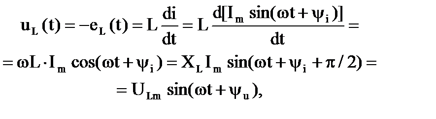 и явление самоиндукции. В этом случае пренебрегают потерями электромагнитной энергии и наличием энергии электрического поля. Напряжение на зажимах индуктивного элемента при протекании синусоидального тока i(t)=Im sin(ωt + ψi) будет определяться: