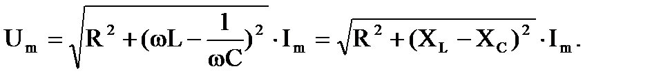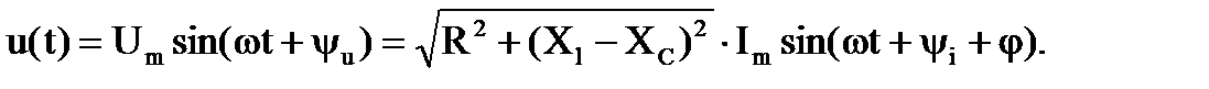 Пусть в цепи, состоящей из последовательно соединенных элементов R, L, C (рис. 3.5), известен ток i(t)=Imsin(ωt + ψi) и необходимо определить напряжение на ее зажимах. Запишем для цепи уравнение по второму закону Кирхгофа для мгновенных значений напряжений: