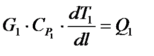 Для каждого теплоносителя запишем уравнение теплового баланса движущегося потока, гидродинамическая структура которого близка к представлениям, связанным с идеальным вытеснением:
