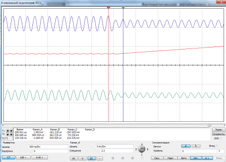 Таким образом: амплитуда входного сигнала: Um1 = 998,355 мкВ; амплитуда выходного сигнала: Um2 = 2,453 мВ. Тогда: