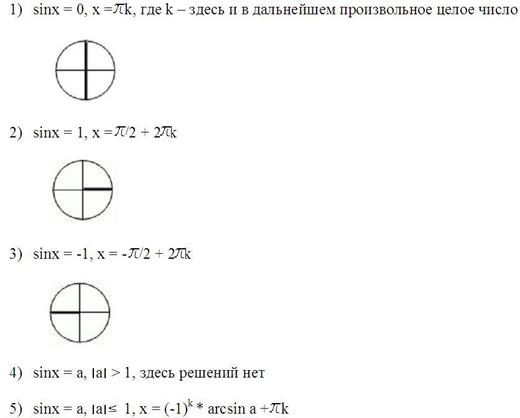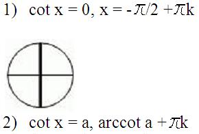 Для тангенса: х = arctg a + πn, n ∈ Z