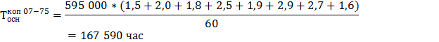 Поток, в котором с учетом дозагрузки изготавливается два вида продукции, относится к многопредметному. Многопредметные потоки подразделяются на одновременные и переменно-поточные. Одновременные многопредметные потоки по способу запуска изделия подразделяются на следующие виды: а) с суммарным запуском – когда в каждую рабочую зону загружаются все виды предметов труда в соответствии с их ассортиментными числами. При этом за каждый такт осуществляется выпуск продукции в полном ассортименте; б) с запуском изделий пропорциональными партиями – когда в каждую рабочую зону загружается один вид продукции в наименьшем количественном отношении, но во все зоны, равные числу видов продукции, загружается полная ассортиментная сумма; в) с циклическим запуском – когда в каждую рабочую зону загружается по одному изделию в количественном соотношении, равном ассортиментному числу. Работа в переменных многопредметных потоках может быть организована в двух вариантах: 1-ый – последовательным переключением после запуска всего объема задания по отдельным видам продукции; 2-ой – последовательно-ассортиментным запуском всех видов продукции в течение каждой смены. В первом случае поток рассчитывается как специализированная однопредметная линия при запуске отдельных видов изделий; имеются только особенности определения такта по каждому виду продукции и коэффициента загрузки линии. Во втором случае особенности расчета связаны с определением объема задания по каждому виду изделий по каждой смене и времени, необходимого для их производства. В данном примере расчет проведем по переменному многопредметному потоку с последовательным переключением после выпуска всего объема задания по отдельным видам продукции. Определим трудоемкость программы по основной (Тосн) детали, час:
