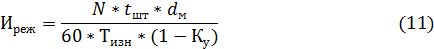 где dм – доля машинного времени в общем штучном времени (tшт) по операции, на которой применяется данный инструмент; Тизн – расчетное время работы инструмента до полного износа.