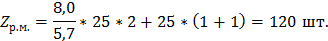 ПРИМЕЧАНИЕ: условно принимаем, что резец подрезной устанавливается на одной токарной операции, а резец проходной – на другой. 3. Определяем запас инструмента на рабочих местах. Количество инструмента, находящегося на рабочих местах при периодической его подноске (Zр.м.), определяется: