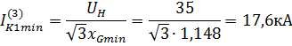 4.3. Определяется максимальный и минимальный ток при металлическом трехфазном КЗ в точка К3: